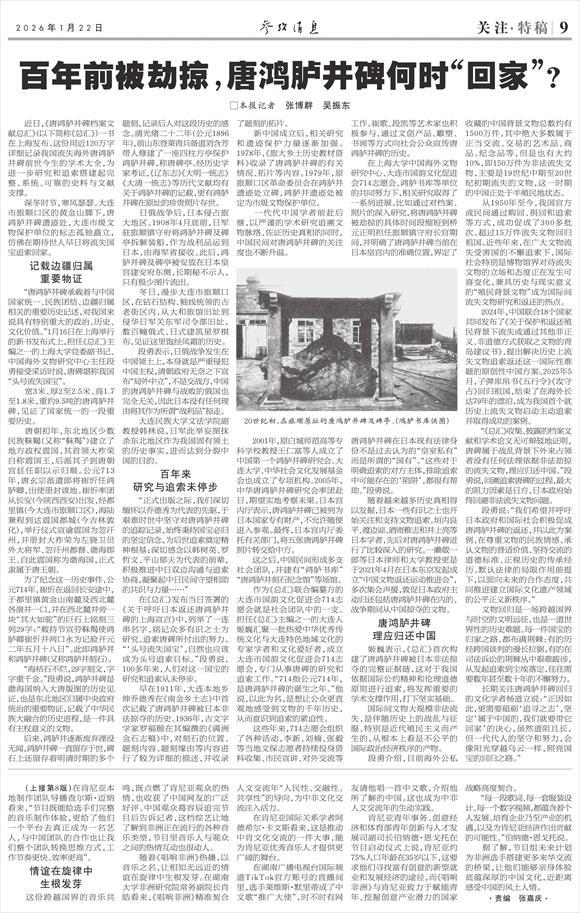 “《总汇》收集、披露的档案文献和学术论文无可辩驳地证明,唐碑属于战乱背景下外来占领者没有任何法理依据非法劫掠的流失文物,理应归还中国。”段勇说,回溯追索唐碑的过程,最大的阻力因素是日方,日本政府始终回避非法流失文物问题。